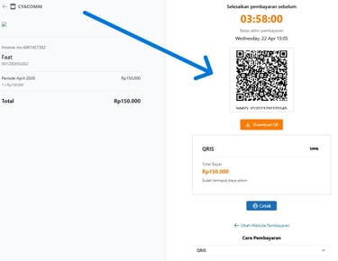 Ketika anda klik link Qris, akan muncul kode QR untuk melakukan pembayaran.