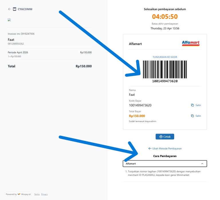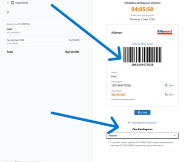 Jika Anda membutuhkan informasi lebih lanjut, silakan tekan "Cara Pembayaran" untuk melakukan transaksi menggunakan merchant Alfamart.