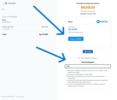 Jika Anda membutuhkan informasi lebih lanjut, silakan tekan "Cara Pembayaran" untuk melakukan transaksi menggunakan merchant DANA.