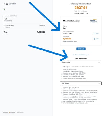 Jika Anda membutuhkan informasi lebih lanjut, silakan tekan "Cara Pembayaran" untuk melakukan transaksi menggunakan Virtual Account Bank Mandiri.
