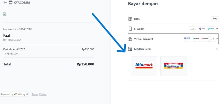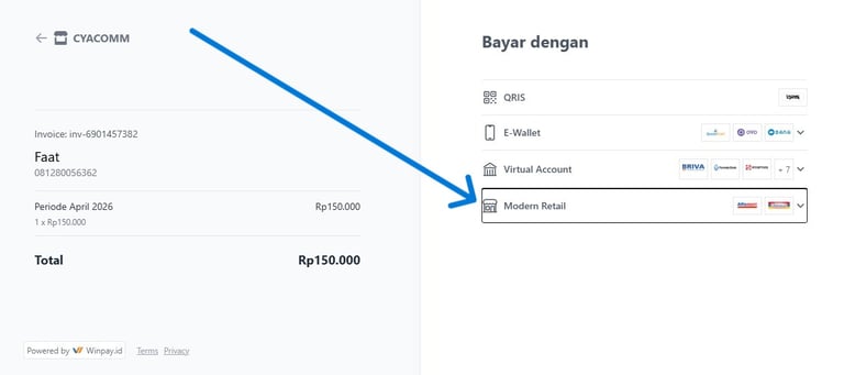 Tata cara pembayaran melalui Modern Retail