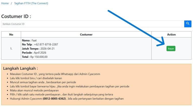 Pastikan Nama, No. Telp dan Total tagihan anda sesuai.