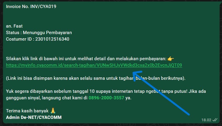 Jika anda menerima Invoice pembayaran dari admin kami silahkan klik Link seperti gambar di bawah ini.